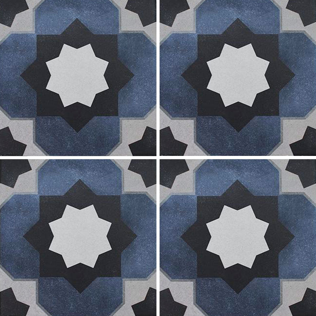 The Aquatica Fleur Series 6x6 porcelain pool tile features a striking star-inspired geometric pattern in deep blue, white, gray, and charcoal tones. Crafted from durable porcelain, it is designed to resist water, pool chemicals, and sun exposure while maintaining its color and finish. This tile is ideal for pool waterlines, spas, and decorative accents, adding a bold yet timeless look. The Fleur series blends classic pattern design with long-lasting performance for elegant pool applications.